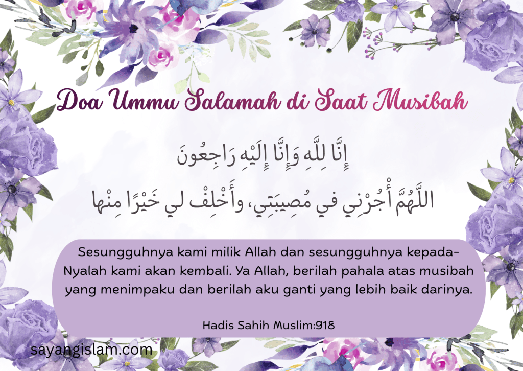 “Sesungguhnya kami milik Allah dan sesungguhnya kepada-Nyalah kami akan kembali. Ya Allah, berilah pahala atas musibah yang menimpaku dan berilah aku ganti yang lebih baik darinya.”