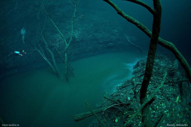 Jika anda seorang penyelam, maka anda harus mengunjungi Cenote Angelita , Mexico . Disana ada sebuah gua. Jika anda menyelam sampai kedalaman 30 meter, airnya air segar (tawar), namun jika anda menyelam sampai kedalaman lebih dari 60 meter, airnya menjadi air asin, lalu anda dapat melihat sebuah “sungai” di dasarnya, lengkap dengan pohon dan daun daunan.