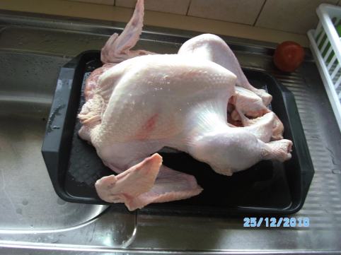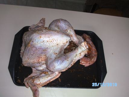Selepas selesai Kem Ibadah petang 24 December, saya bercadang melihat turkey bagi membersih dan memerapnya kerana teringat pesanan Kak Sal, sebaik-baiknya perap ‘over night’. Namun dek kepenatan, turkey itu masih tersimpan dalam peti sejuk. Pagi 25 December, baru saya berkesempatan mencuci dan memerapnya. Saya memilih kaedah memerap yang dirasakan paling mudah. Sebelumnya, sudah di’survey’ dalam internet beberapa resepi. Juga bertanya kawan yang pernah memanggang ayam. Tidak kurang juga saya meminta tip daripada Kak Sal yang baru dikenali di sini. Kak Sal biasa sangat membuat ‘turkey roast’ kerana bersuamikan mat saleh Australian. Daripada Kak Sal, baru saya tahu dimana mahu cari turkey yang sudah siap dipotong.