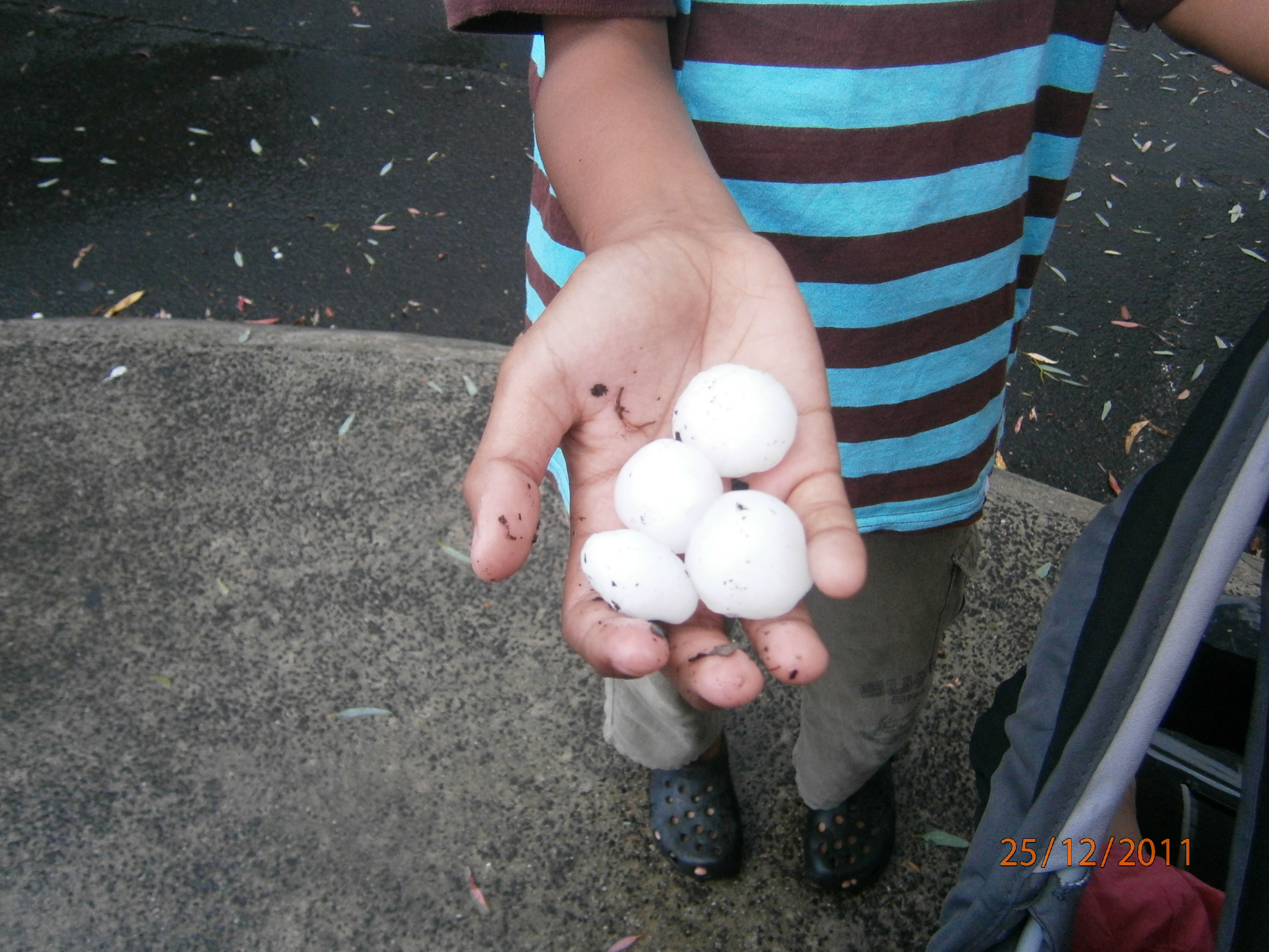 Hujan ais ini pada mulanya berlaku di Moreland dan Coburg. Alhamdulillah, cermin kereta kami yang diletakkan di kawasan parking terbuka tidak retak dan pecah. Ketika kami sampai di rumah yang jaraknya kira-kira 5 km dari Coburg, kawasan rumah masih kering menandakan tiada hujan turun. Kira-kira 10 minit selepas itu, barulah kedengaran berdentum-dentum hujan air batu menimpa atap rumah. Ia turun dengan lebat diserta guruh dan kilat. Nasib baik juga kereta sudah diparking di dalam garaj, alhamdulillah. Ada cermin kereta yang retak dan ada atap rumah yang pecah di tempat lain.