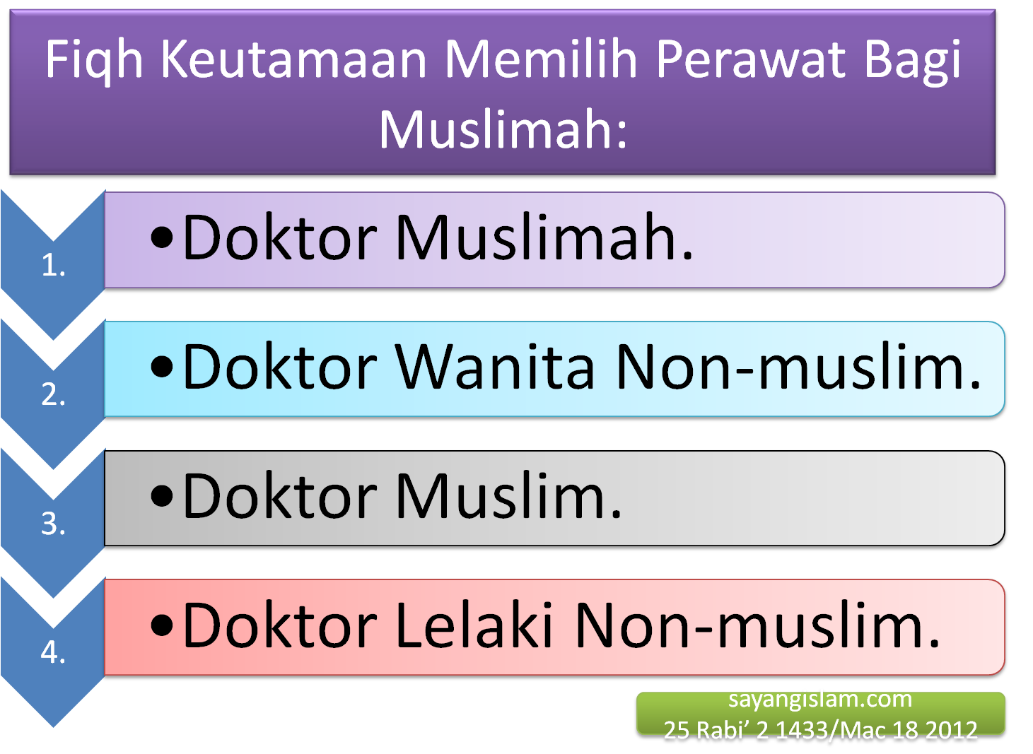 “Suami kita kan ada… tiada masalah. Lagi pun mereka cek sekejap kemudian siap”, ujarnya lagi. Saya hanya mendiamkan diri. Saya tahu dia tidak faham fiqh keutamaan dalam berubat bagi muslimah yang melibatkan soal aurat. Kalaulah hukum ini saya sendiri yang gubal, mudahlah mengubahnya bila-bila masa yang saya suka. Realitinya ia adalah hukum Allah yang sudah punya prinsip dan kaedah dalam mengamalkannya.