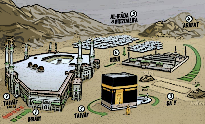 Di situ ada tanda-tanda keterangan yang nyata (yang menunjukkan kemuliaannya; di antaranya ialah) Makam Nabi Ibrahim. Dan sesiapa yang masuk ke dalamnya aman tenteramlah dia. Dan Allah mewajibkan manusia mengerjakan ibadat Haji dengan mengunjungi Baitullah iaitu sesiapa yang mampu sampai kepadanya. Dan sesiapa yang kufur (ingkarkan kewajipan ibadat Haji itu), maka sesungguhnya Allah Maha Kaya (tidak berhajatkan sesuatu pun) dari sekalian makhluk.