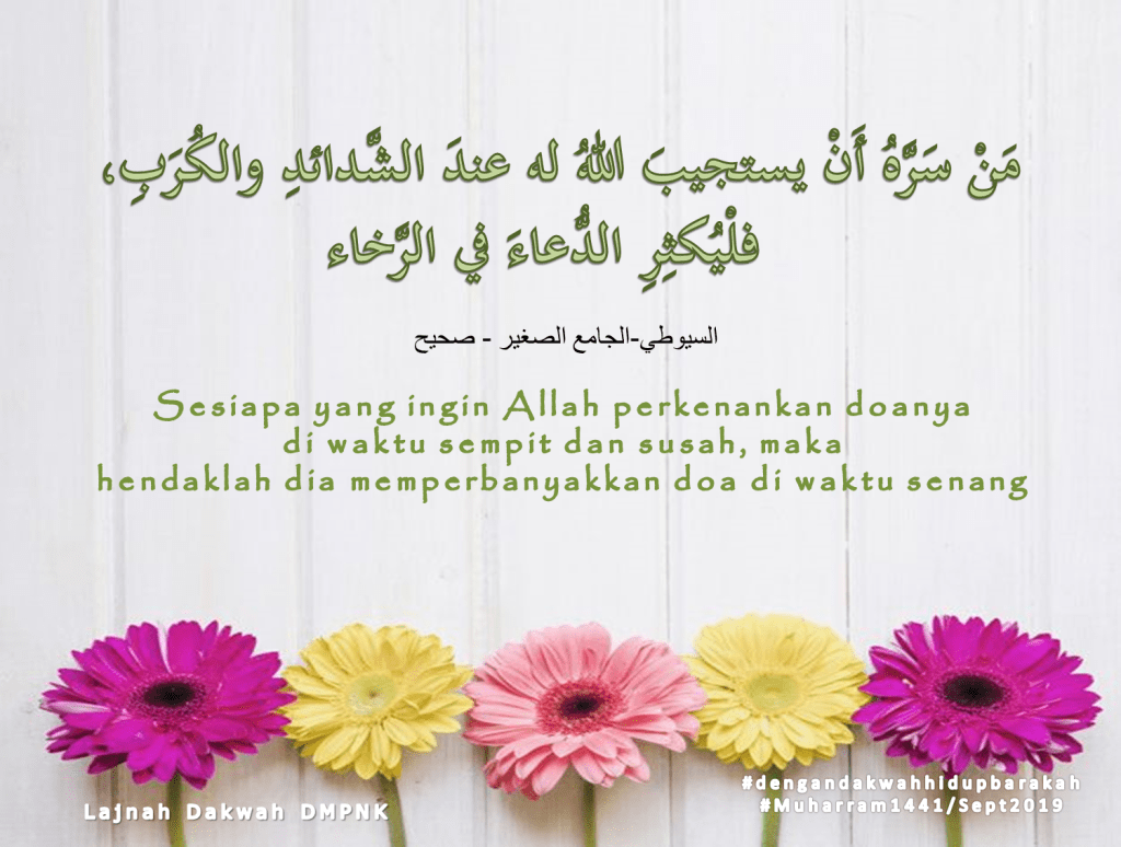 2. Jika kau mahu Allah perkenankan permintaanmu di waktu susah, banyakkan berdoa di waktu senangmu. (Hadith Al-Tirmizhi)