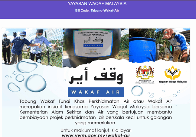 1. Memperkenalkan sistem wakaf air dengan menubuhkan Tabung Wakaf Tunai Khas Perkhidmatan Air Malaysia (Wakaf Air) yang mendapat kerjasama Yayasan Waqaf Malaysia.