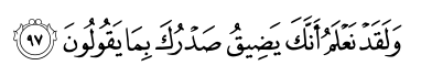 Dan demi sesungguhnya Kami mengetahui, bahawa engkau bersusah hati dengan sebab apa yang mereka katakan. Oleh itu, bertasbihlah engkau dengan memuji Tuhanmu, serta jadilah dari orang-orang yang sujud.