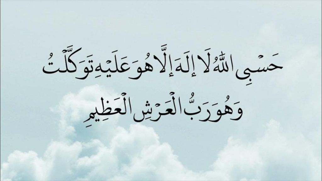 Kemudian jika mereka berpaling ingkar, maka katakanlah (wahai Muhammad): “cukuplah bagiku Allah (yang menolong dan memeliharaku), tiada Tuhan (yang berhak disembah) melainkan Dia; kepadaNya aku berserah diri, dan Dia lah yang mempunyai Arasy yang besar.”