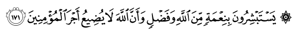 Mereka bergembira dengan balasan nikmat dari Allah dan limpah kurniaNya; dan (ingatlah), bahawa Allah tidak menghilangkan pahala orang-orang yang beriman.